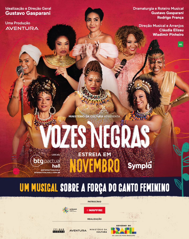 A seguradora MAPFRE apoia o espetáculo “Vozes Negras: A Força do Canto Feminino”, que chega aos palcos paulistanos para celebrar a força, a criatividade e o legado das mulheres negras na música popular brasileira. Com estreia marcada para 04 de novembro, a produção propõe uma viagem por diferentes épocas da música nacional, mostrando como diversas artistas transformaram ritmos, influenciaram gerações e inspiraram toda a cultura do país.